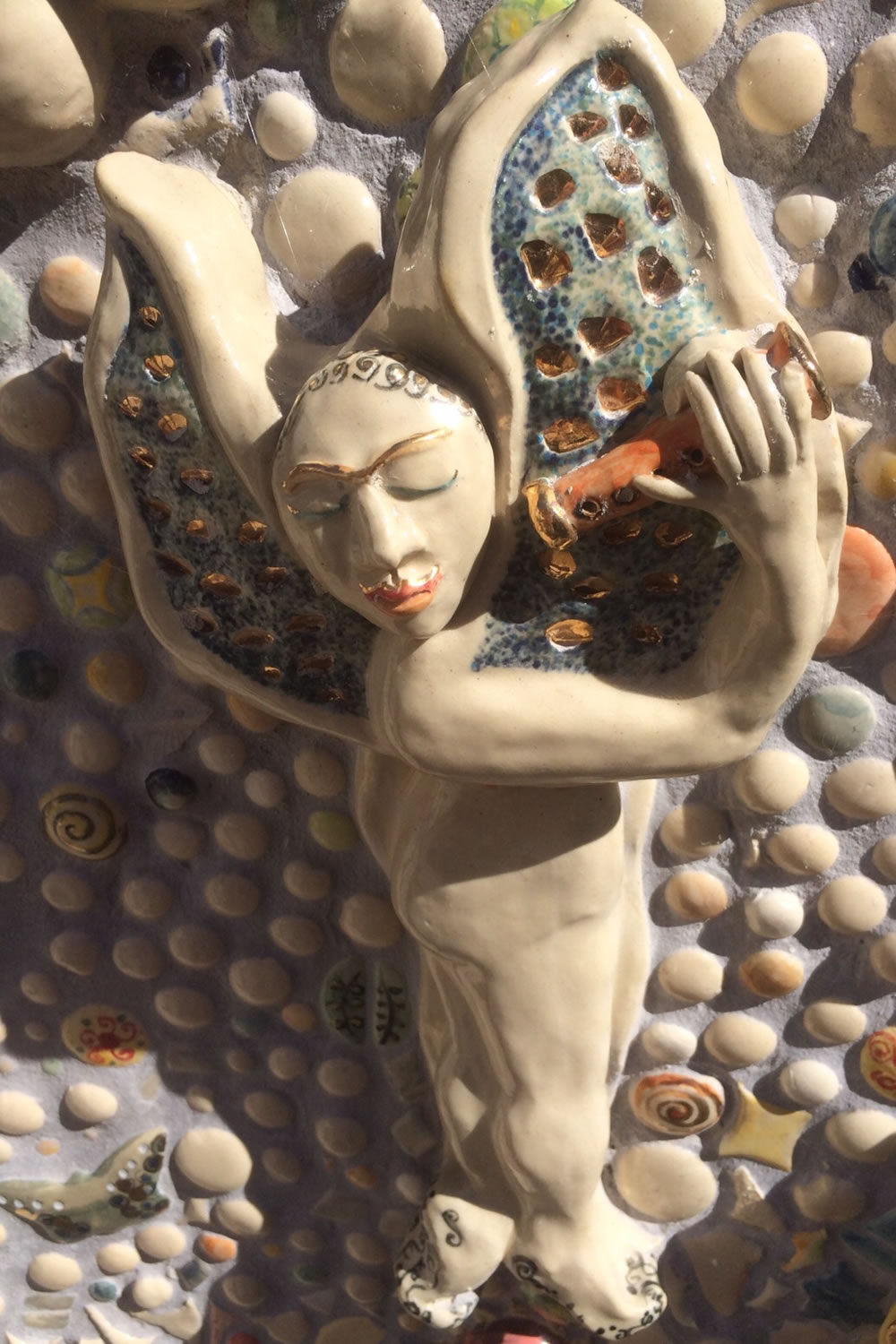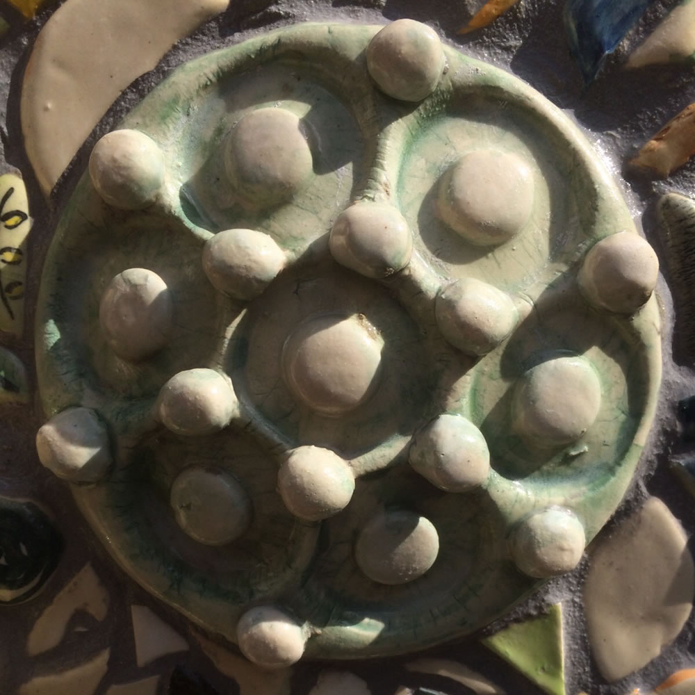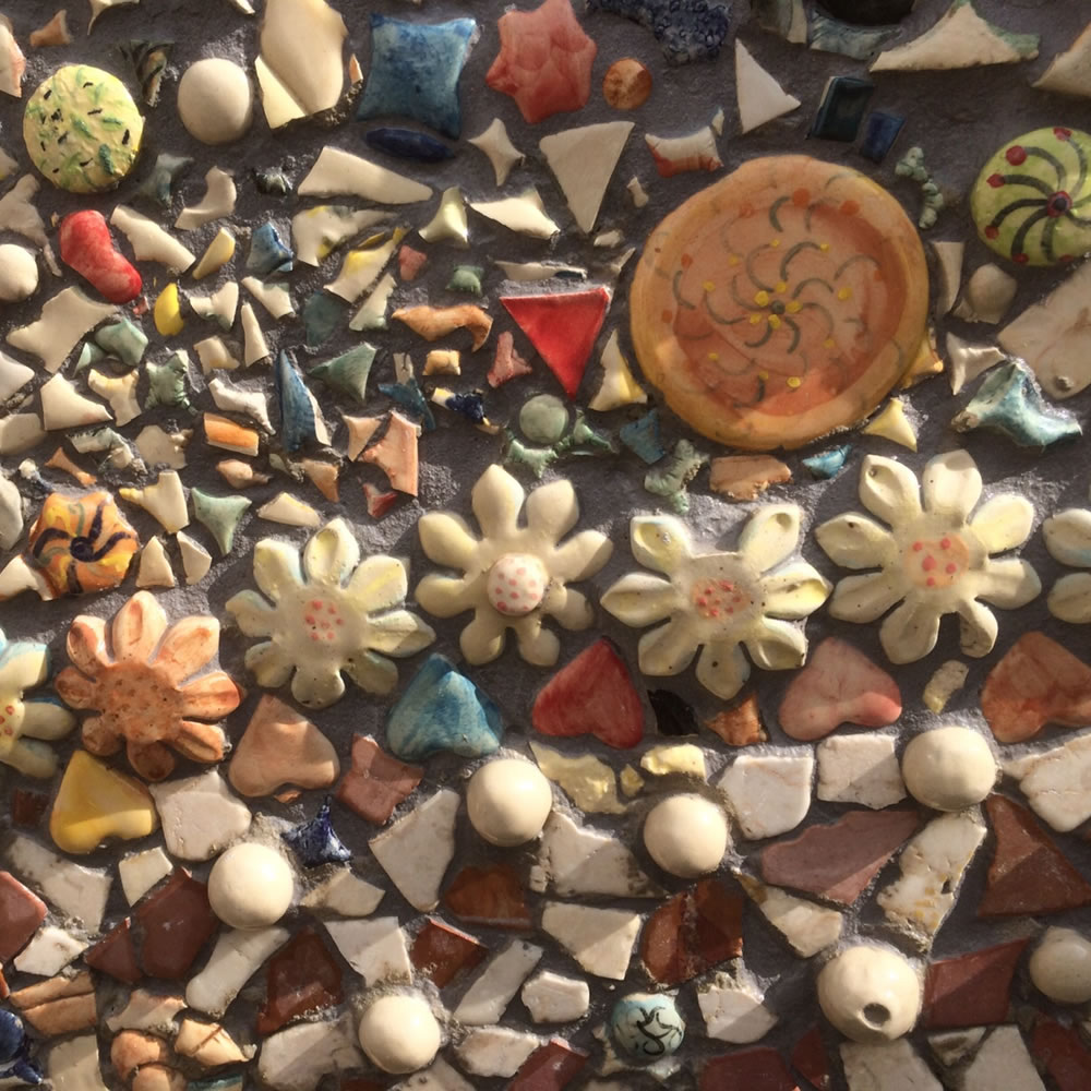 Schwerpunkt meiner künstlerischen Arbeit ist die Gestaltung von Mosaiken aus selbst hergestellter Keramik, insbesondere für die Gestaltung von Wänden im Ambiente. Alle Stücke werden von Hand aus hochwertigem Ton gefertigt. Sie durchlaufen verschiedene Techniken des Brandes und der Glasur. Für besondere Gestaltungselemente kann ein separater Brand mit Gold erfolgen. Meine Arbeiten setze ich außer an Wänden und Gebäuden auch mit Einzelstücken um. Das zuletzt durchgeführte Projekt umfasst eine Mauer von 3 Metern Länge mit mehr als 3.000 Mosaiksteinen.
